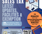 YBhg. Tan Sri/Datuk Seri/Dato’ Seri/Datuk/Dato’/Datin/Tuan/Puan, PERSATUAN PEGAWAI KANAN KASTAM MALAYSIA CAWANGAN PUTRAJAYA (PERKASA PUTRAJAYA) will be organizing WEBINAR ON SALES TAX EXPANSION 2025: BROADENING SCOPE as follows: WEBINAR ON SALES TAX EXPANSION 2025: [...]