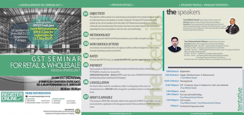 (Early Bird promotion RM 455 nett/pax for registration by 15 May 2017)