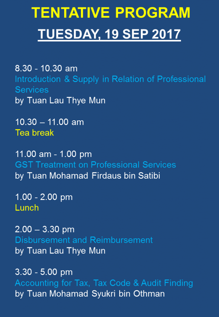 Early bird promotion for registration by 18 August 2017 = RM500 nett/person