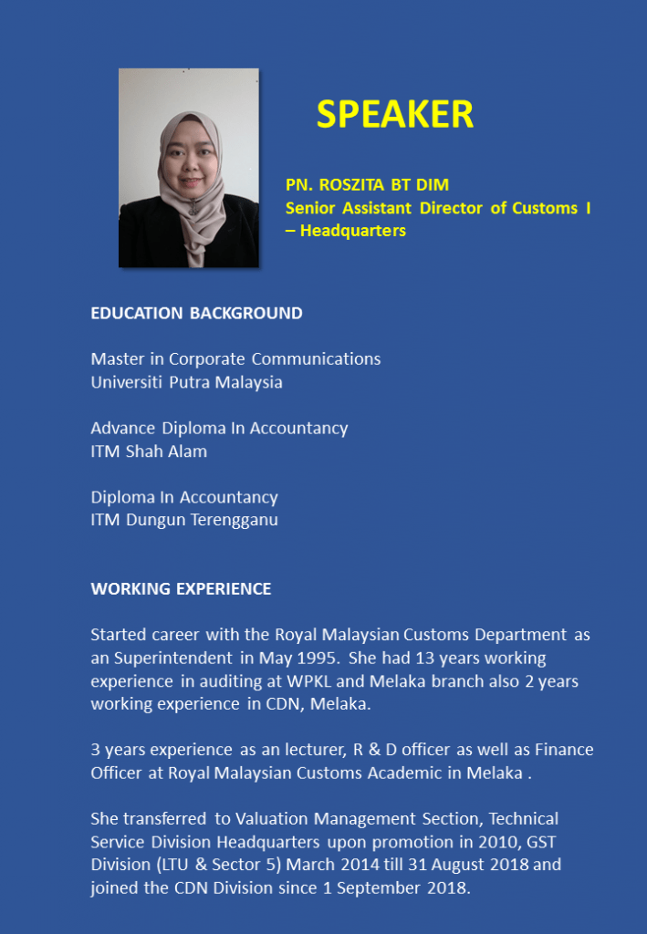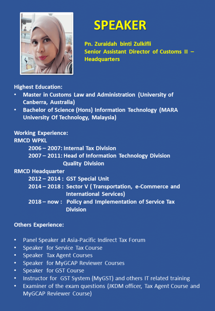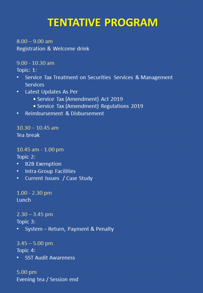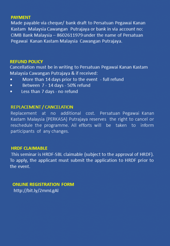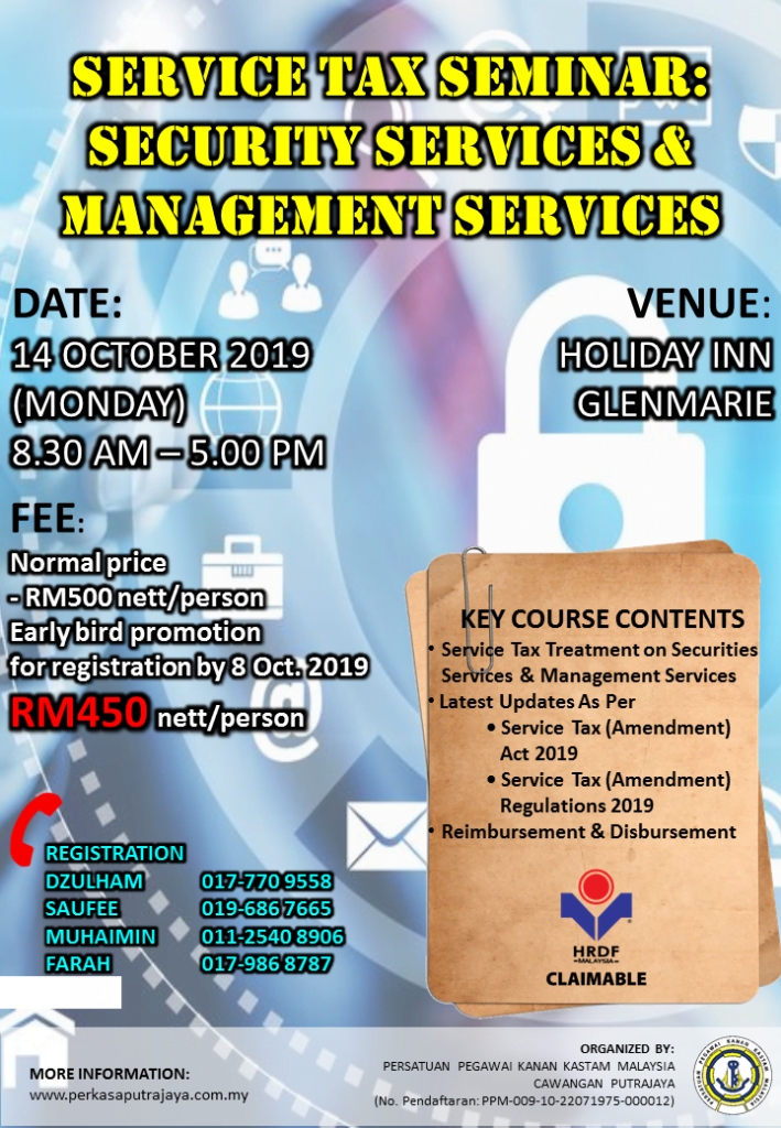 Please be informed that PERSATUAN PEGAWAI KANAN KASTAM, PUTRAJAYA BRANCH (PERKASA PUTRAJAYA) will be hosting the “SERVICE TAX SEMINAR: