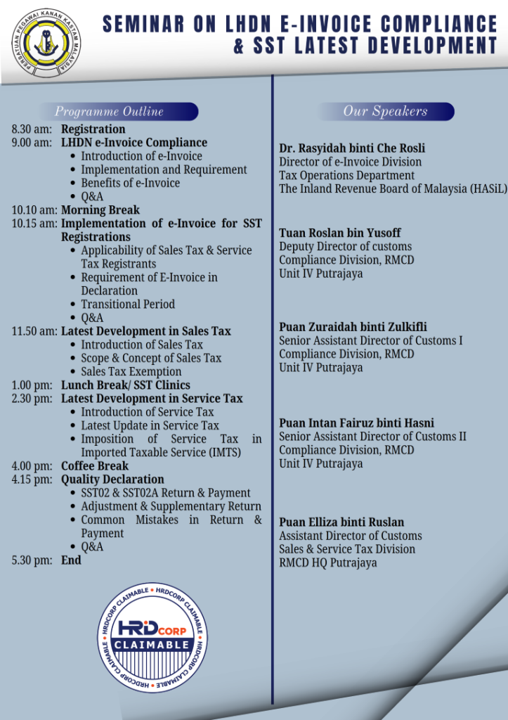 SEMINAR ON LHDN E-INVOICE COMPLIANCE & SST LATEST DEVELOPMENT