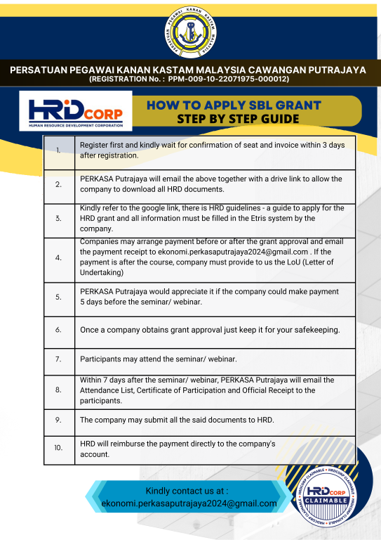 | TRAINING PROVIDER: | PERSATUAN PEGAWAI KANAN KASTAM MALAYSIA CAWANGAN PUTRAJAYA |